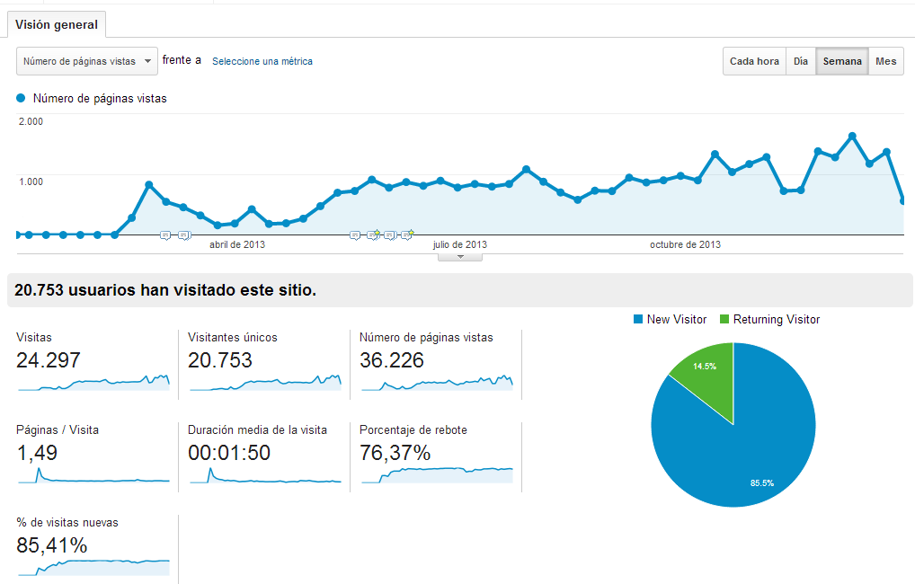 - He aprendido a hacer SEO bastante bien, y a las pruebas me remito un 85% de nuevas visitas y un 50% de acceso por Google. Y en el último mes del 88% y del 81% respectivamente.