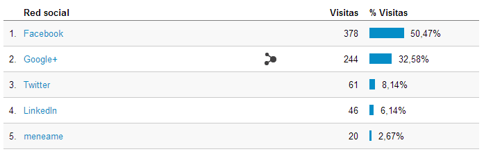 - Social, las redes sociales, acceden por links en Facebook, Google+, Linkedin o Twitter. tengo una media de 72 y el último mes 67.